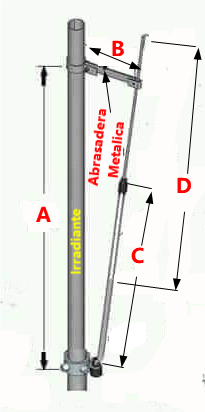 El ajuste de la antena, se realiza moviendo la abrazadera metálica (B) hacia arriba o abajo y estirando o acortando el tubo (D).