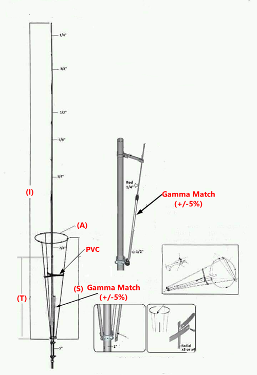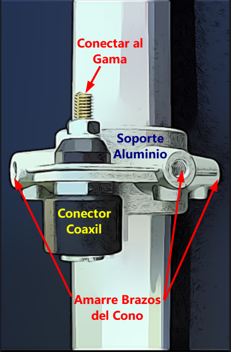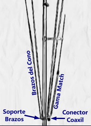 El Gama Match, va conectado al centro del conector coaxil, al vivo; la tierra del del conector, parte exterior, va en conectada con el toda la antena.