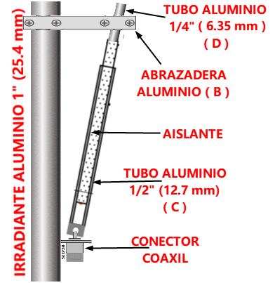 Consta de dos tubos de aluminio, en el dibujo C y D; estos dos tubos van aisladas uno de otro para que actué como un condensador.