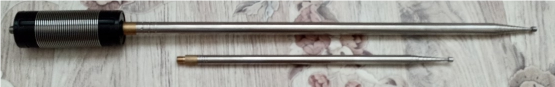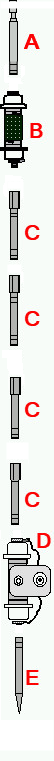 La parte superior de la antena, es telescopico. La longitud total estirada es de 2 Mts 51 cms + 1 cm de rosca, que se roscara en la bobina.