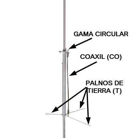 N = tubo de Nylon, Teflón o material aislante, que aísla la antena vertical S del trozo inferior G.
