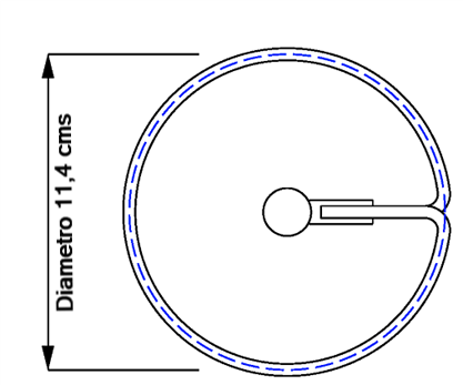 de 4 cms, va un alambre de aluminio de 4 mm, uno de los extremos va conectado