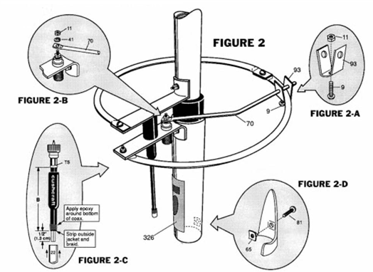 E = aluminio que une el borne del cable coaxial a la abrazadera A.