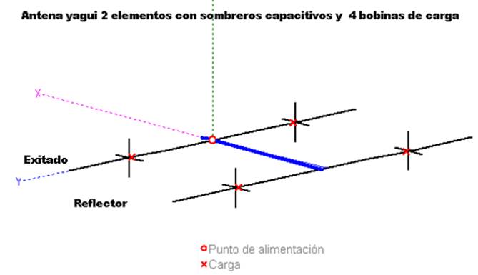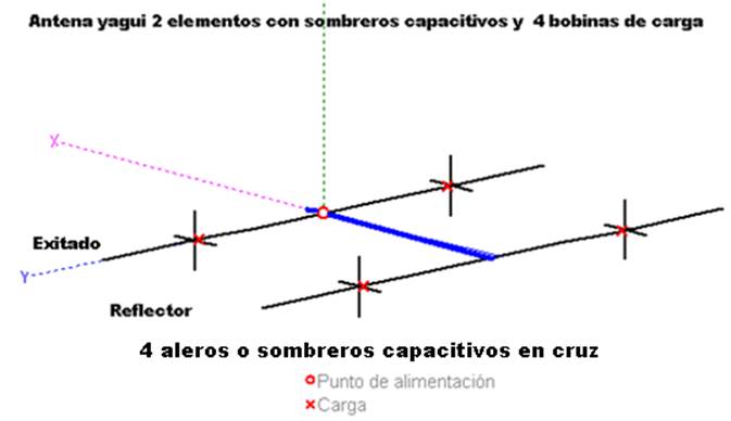 Los elementos que conforman los sobreros capacitivos son de mayor tamaño, que los que utilizan las antenas tradicionales, las 4 bobinas instaladas en la antena tienen la característica de una relación entre largo de ellas y diámetro, así como la relación diámetro del conductor y espaciado del mismo con el propósito de lograr un factor de calidad “Q” más elevado, pero no tan alto para que no se reduzca tanto el ancho de banda.