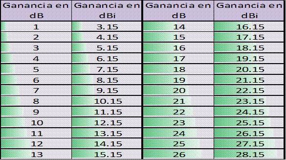La ganancia de la antena puede variar con la altura de instalación, la ganancia expresada en la imagen superior es con respecto a una antena isotrópica, si queremos conocer la ganancia en con respecto a un dipolo, se le debe de restar 2.15 dB a los datos anteriores para obtener datos en dB.