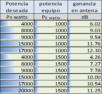 Los parámetros más importantes del diagrama de radiación son: a 14 mts de altura.