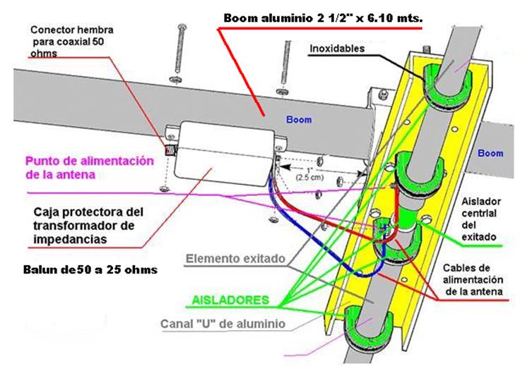 Nota importante recuerde que la antena debe llevar un balun de 50 ohms a 25 ohms