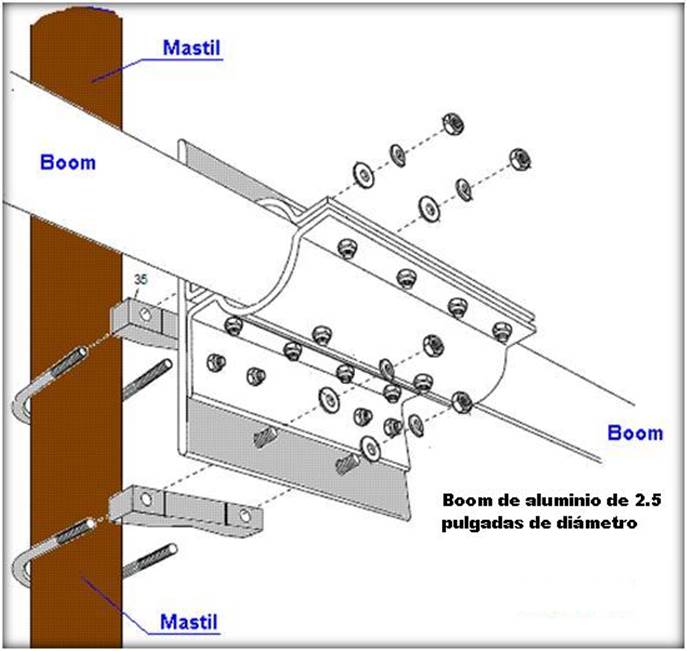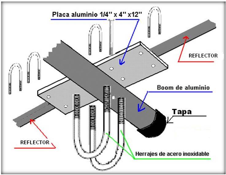 Separación entre elemento exitado y reflector es de 5.79 metros, utilizando un boom de 2 ½” por 6.10 mts de largo total dejando el sobrante en los dos extremos.