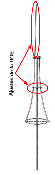 El ajuste de la ROE, se hace por medio de la varilla superior (2 o 3 según la que fabriquen), achicandola o alargándola y moviendo el separador del brazo inferior (6) subiéndolo o bajándolo.