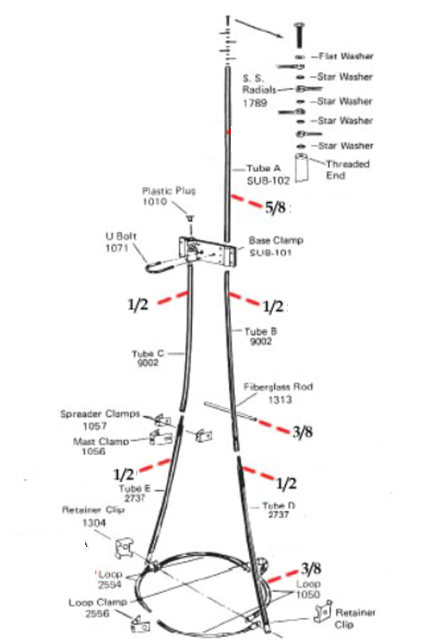 Miren la antena el separador de 3/8 numero 1313 ( numero 6 en el calculo de antena ), es de material aislante, PVC, Nylon, etc.