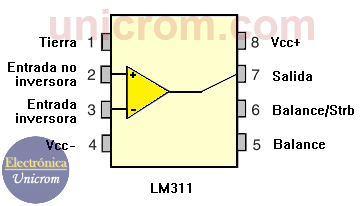 Dependiendo del valor del voltaje en el pin 2 del integrado (dado por el potenciómetro), el valor del voltaje en el pin 3 disminuirá y será menor al voltaje del pin 2. Esto causará que en la salida del U1 (pin 7) haya un voltaje alto que activará el transistor Q1.