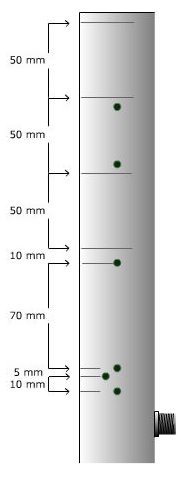 abajo varios milímetros en el tubo de PVC, moviéndola a través de los agujeros