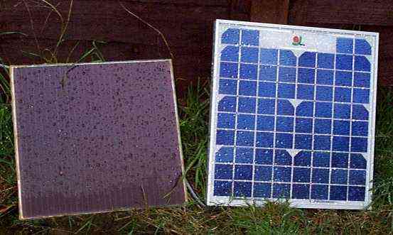 Los paneles solares de silicio cristalino más baratos en el Reino Unido proporcionan 12V - 15 Watios y custan 99 libras (en Maplin, año 2010). Estos paneles proporcionarán una corriente de 1,25 A a pleno sol, por lo que, como puede ver, no permitirá que una nevera de camping que consume 4 A pueda funcionar de forma continuada.