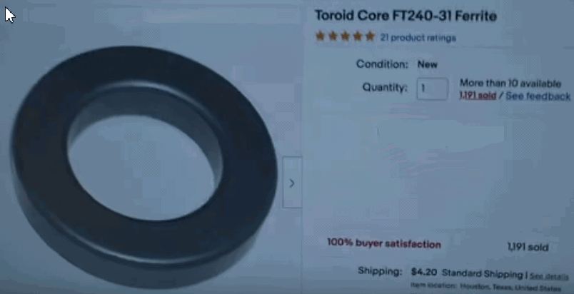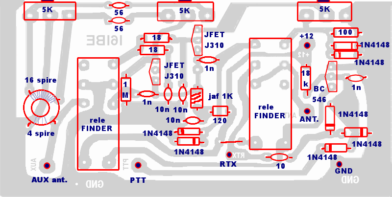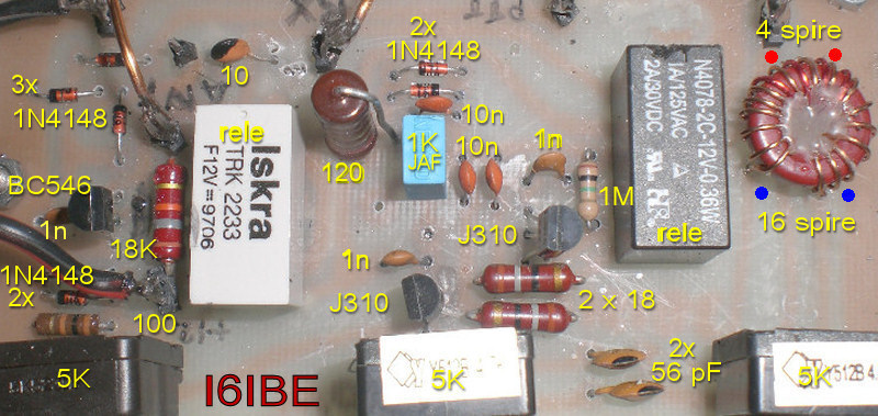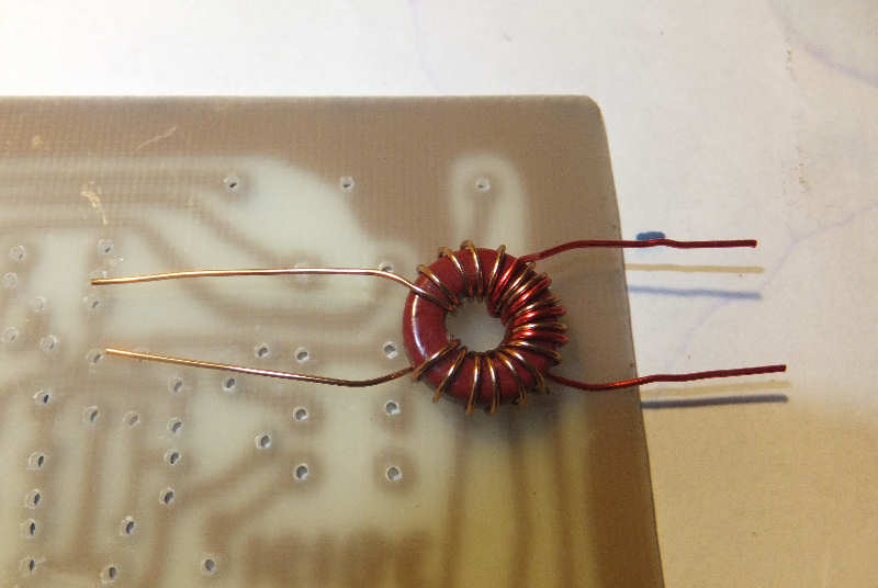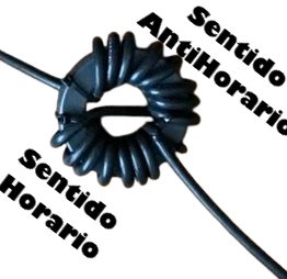 A la llegada del cable coaxil (en la coneccion al transeptor), envolveremos 5 vueltas del cable coaxil en un toroide.