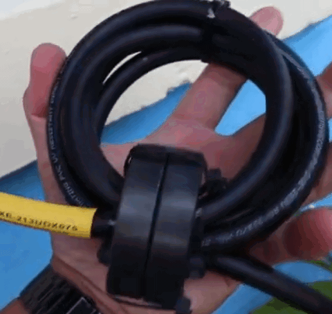 Para filtrar el ruido que nos puede entrar por la antena, pondremos 3 cuentas de ferrite juntas en el cable coaxil a la llegada de la antena, fijarlas para que no se muevan: