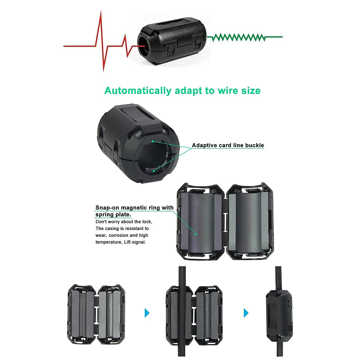 Si esto no es posible, podremos poner cuentas de ferrite una al lado de la otra, en este caso sera conveniente poner las cuentas en CC y CA.