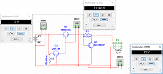 Pero en caso de sobrecarga, este voltaje es 0.7V + 0.3V = 1V, por lo que el circuito se ajusta automáticamente a la intensidad máxima preestablecida.