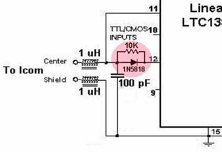 Some Ten-Tec's need a level converter just like the Icom's, so I have a feeling this circuit will work as-is. Unos diez-Tec necesitan un convertidor de nivel al igual que el ICOM, así que tengo la sensación de este circuito funciona como está. Yaesu splits their TTL lines into "serial in" and "serial out" - so you should be able to use separate leads from IC pins 11 and 12 (with their own chokes and 100pf caps to ground) as well as the ground connection. Yaesu divide sus líneas TTL en "en serie" y "fuera de serie" - por lo que debería ser capaz de utilizar lleva separado de IC pins 11 y 12 (con sus propias bobinas y 100pf tapas a tierra), así como la conexión a tierra. You would then use a 2 conductor shielded cable to the proper sized DIN plug for your model Yaesu. A continuación, se utiliza un cable blindado de 2 conductores para el tamaño adecuado de conector DIN para su modelo Yaesu. Pin 11 would go to "serial in", pin 12 to "serial out" and shield to ground on the Yaesu DIN plug. Pin 11 iría a la "serie en", pin 12 a "fuera de serie" y el escudo a tierra en el enchufe DIN Yaesu. This has not been tested, so let me know how this works. Esto no ha sido probado, así que déjenme saber cómo funciona esto. The Kenwood is a bit more complex from what I hear. La Kenwood es un poco más complejo de lo que oigo. Many models use an IF10 interface in addition to a TTL/RS232 interface. Muchos de los modelos usan una interfaz IF10, además de una interfaz de TTL/RS232. You may be able to adapt my circuit to include a hex converter IC from pins 11 and 12 and power it from the same 5 volt source. Usted puede ser capaz de adaptar mi circuito para incluir un IC convertidor hexadecimal de 11 y 12 pines y el poder que de la misma fuente de 5 voltios. Please let me know if you are successful. Por favor, hágamelo saber si usted es acertado.