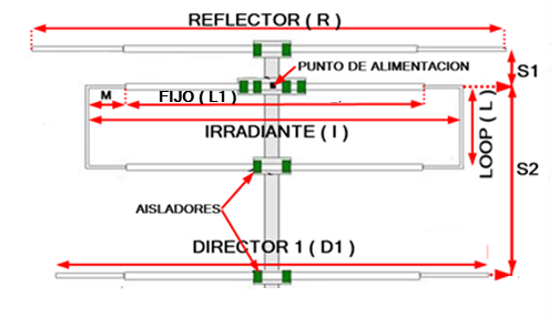 Las separaciones de los elementos, son todas medidas desde el reflector.