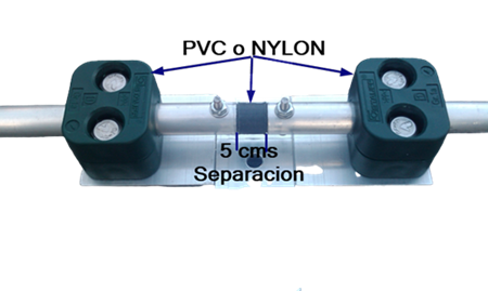 Al igual que todos los elementos, van aislados del boom con abrazaderas de PVC, Nylon industrial, etc.