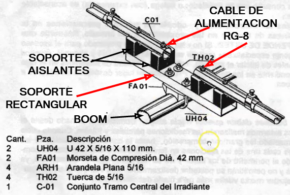 Ambos lados de los brazos, son iguales, en el cetro de la antena van separados unos 5 cms y se montan sobre material aislante.