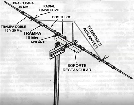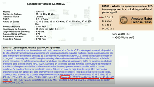La contra de esta antena, es que según las especificaciones técnicas, solo soporta 500 W PEP para 40Mts y 1000 W PEP en 10, 15 y 20Mts.