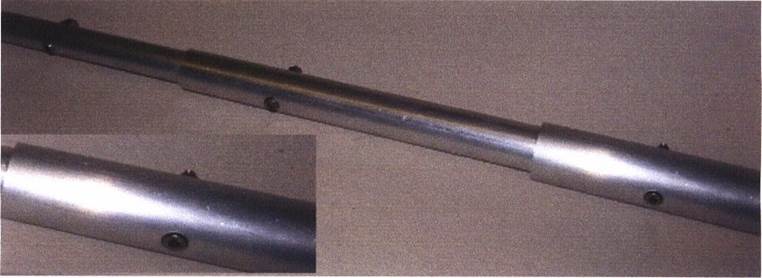 A continuación hay que montar las otras secciones del elemento. Inserte las siguientes secciones en las secciones anteriores con su lado que tiene dos agujeros de perforación de igual tamaño. Los tubos deben ser introducidos hasta que los agujeros de ambas secciones se superpongan perfectamente (en el caso de los tubos exteriores de 12mm de los elementos conducidos se debe elegir el medio de los tres agujeros).