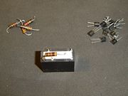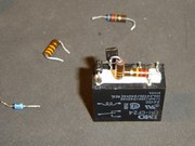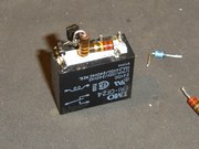 Un paso a paso de armado de la protección sobre un mini relé. La protección esta destinada a una fuente de 10 amperes, y el primer resistor que se suelda está destinado a facilitar el armado, proveyendo un soporte para la masa del circuito. El valor de dicho resistor no es crítico, e incluso podría usarse un capacitor que oficie de puente aislado. El relé, como varios de los componentes, fueron obtenidos de circuitos de rezago, dado que casi ningún valor es crìtico, a exepción del Zener de 15V. |