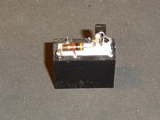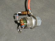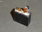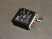 El mismo circuito, con la sutil diferencia del conexionado de los contactos del relé, a tener en cuenta en el momento del armado de acuerdo a la disposición de terminales . Además, se muestra un resistor conectado al terminal NA del relé (Normal Abierto), su valor no importa, ya que solo cumple la función de soporte para facilitar el armado sobre el mismo relé (se muestra más adelante). |