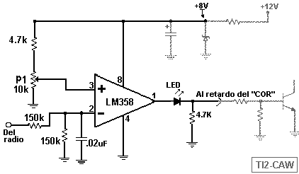 En la mayoría de los radios es muy difícil encontrar un punto que se pase a positivo al recibir una señal que tenga buena corriente, por eso se puede utilizar un circuito integrado operacional para leer la información y pasársela al circuito de retardo.