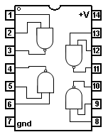 Las compuertas pueden ser del circuito integrado NTE4001 o NTE4011.