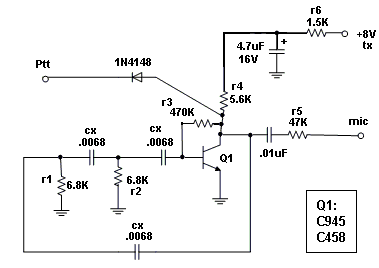 Si el radio tiene un punto que se pasa a 8 o 9 voltios en transmisión es mejor para alimentar este oscilador (+8v tx).