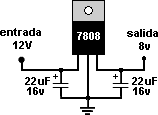 La alimentación de 8 voltios la tomamos del radio, si se nos dificulta realizamos un regulador