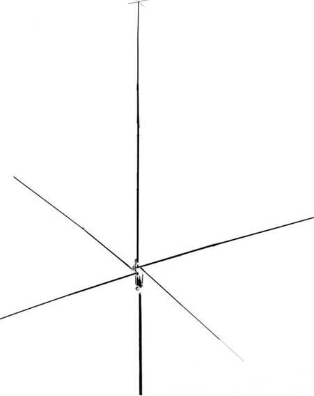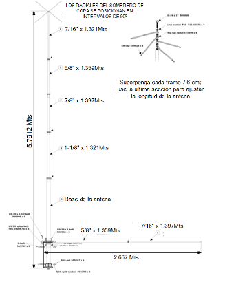 lnstall el resto de los elementos verticales como se muestra en el diagrama de la página siguiente. Haga esto porque el resto de los radiales están conectados , ya que será más fácil inclinar la antena sin los radiales en toda su longitud.