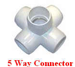 Tanto el boom como los soportes de la antena están realizados con tubos de PVC, también puede hacerse de con madera u otro material aislante. La cruz pondemos realizarla con un adaptador de 5 conectores:
