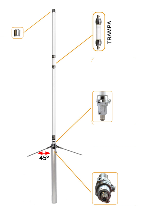 Para ajustar la impedancia lo mas próximo a 50Ω, conviene que estos estén instalados a 45º; si ponemos estos a 90º, la impedancia sera próximo a 75Ω